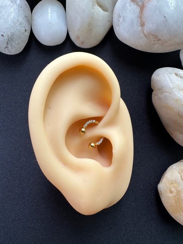 بيرسنق مصنوع من الستانلس ستيل المطعم بالزركون مناسب للاذن والانف والشفايف والحواجبالسمك 1.2 ملم اللون ذهبي